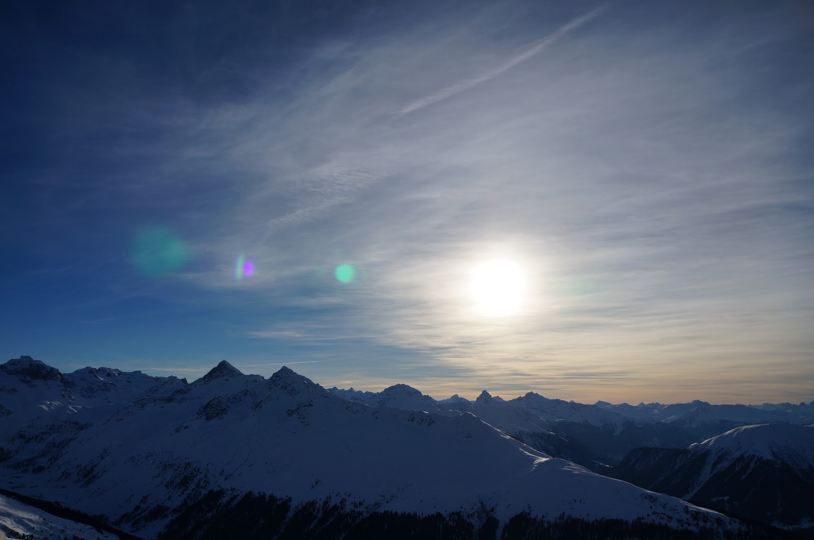 Davosissa olikin sitten jo talvisempaa. Aamut olivat usein pilvisiä, mutta kellon lähestyessä kahtatoista taivas alkoi melkein joka päivä kääntyä sineen.